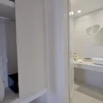 Værelserne har udsigt over swimmingpool. Der er også et privat badeværelse.